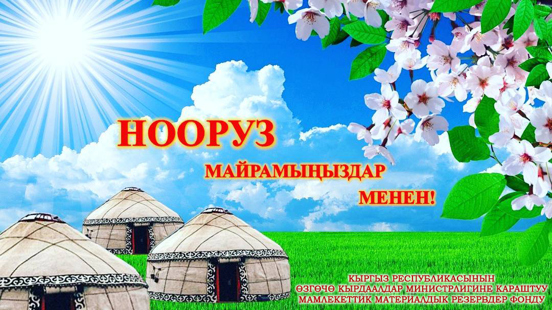 Сиздерди Кыргыз Республикасынын Өзгөчө кырдаалдар министрлигине караштуу Мамлекеттик материалдык резервдер фондунун жамаатынын жана жеке өзүмдүн атымдан Нооруз майрамы менен чын жүрөктөн куттуктаймын!