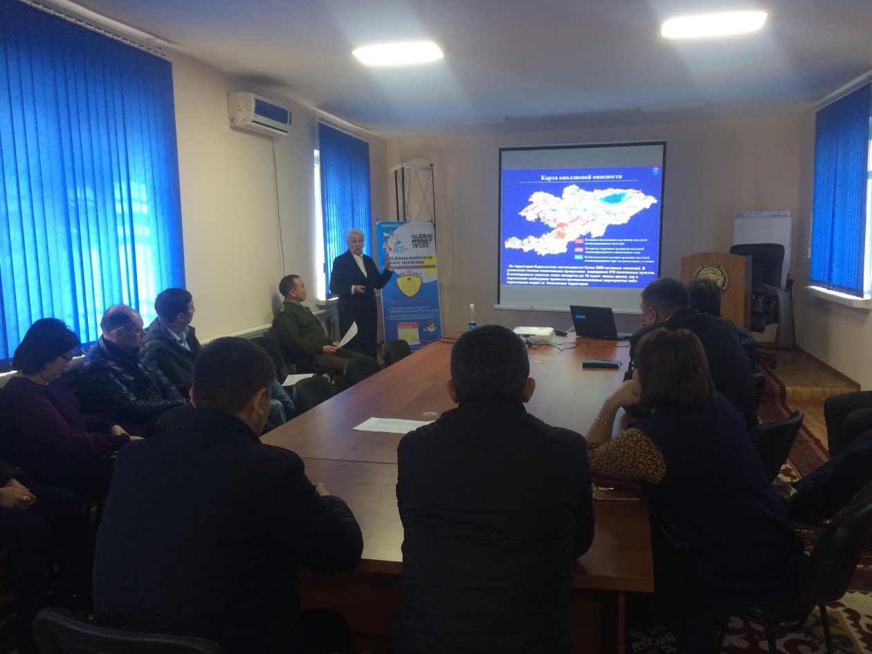 Сотрудниками Центра подготовки и переподготовки специалистов Гражданской защиты Министерства чрезвычайных ситуаций Кыргызской Республики 23-марта 2018 года был проведен семинар для сотрудников центрального аппарата Фонда государственных материальных резервов при Правительстве Кыргызской Республики. На данном семинаре подполковник Мамбетов М. ознакомил с правилами поведения и действиями при пожаре, со средствами пожаротушения. Клецова В.П., в свою очередь, расказала о чрезвычайных ситуациях природного характера, таких как землетрясение, и провела инструктаж по правилам поведения при возникновении данной ситуации.